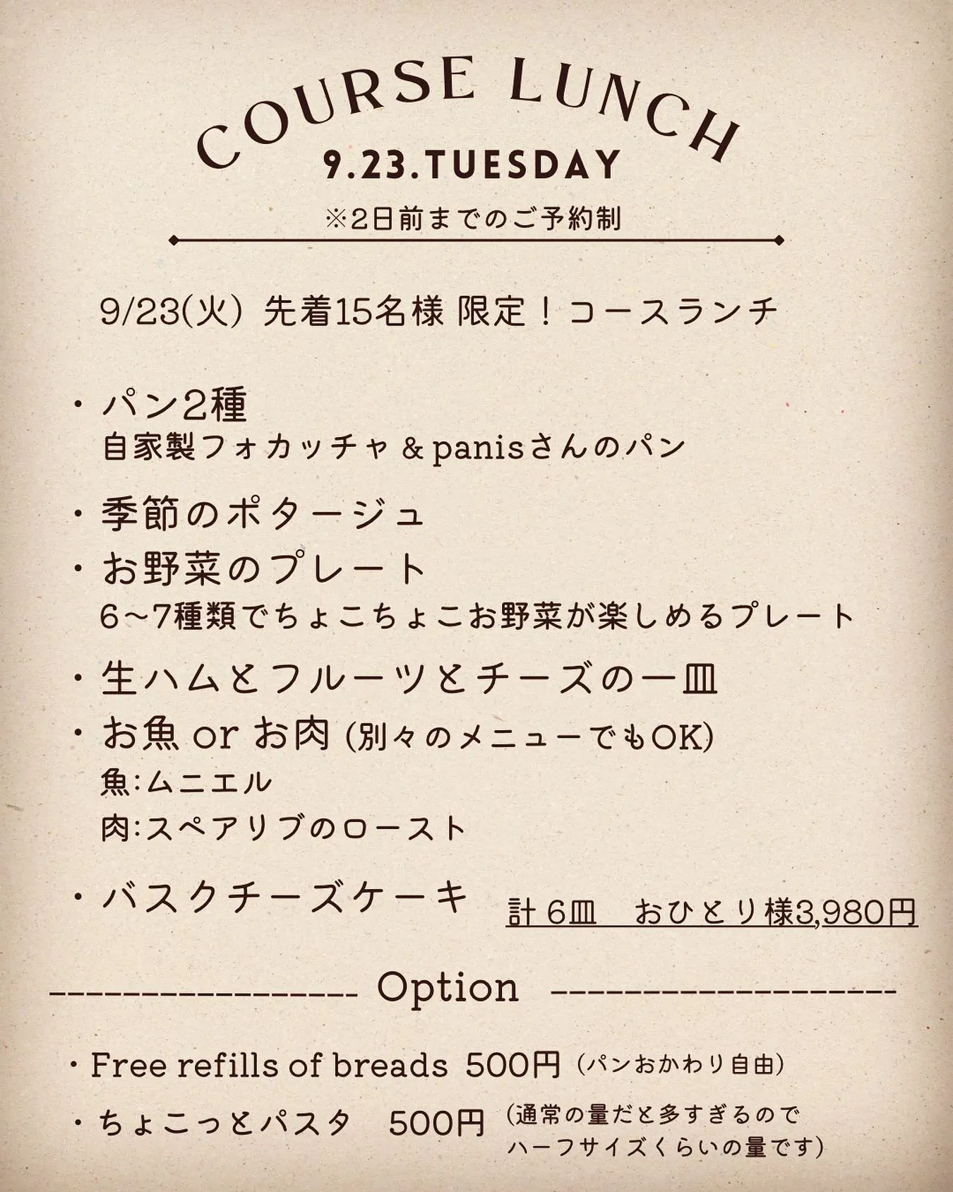 先着15名様ですが日頃の感謝を込めてのお得なコース🍽️