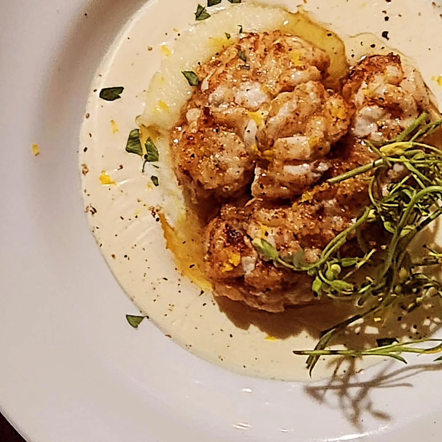 丁寧に下処理&白ワインでマリネした白子に乾燥させたハーブを纏わせてムニエル。